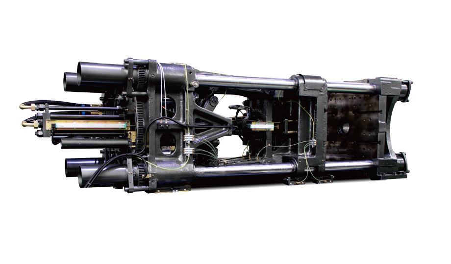 內(nèi)卷五支點曲肘式鎖模機構(gòu),經(jīng)有限元分析強化的鑄造連體結(jié)構(gòu)的連桿及模板有效降低應(yīng)力和變形量,提高鎖模部分的剛性和精度